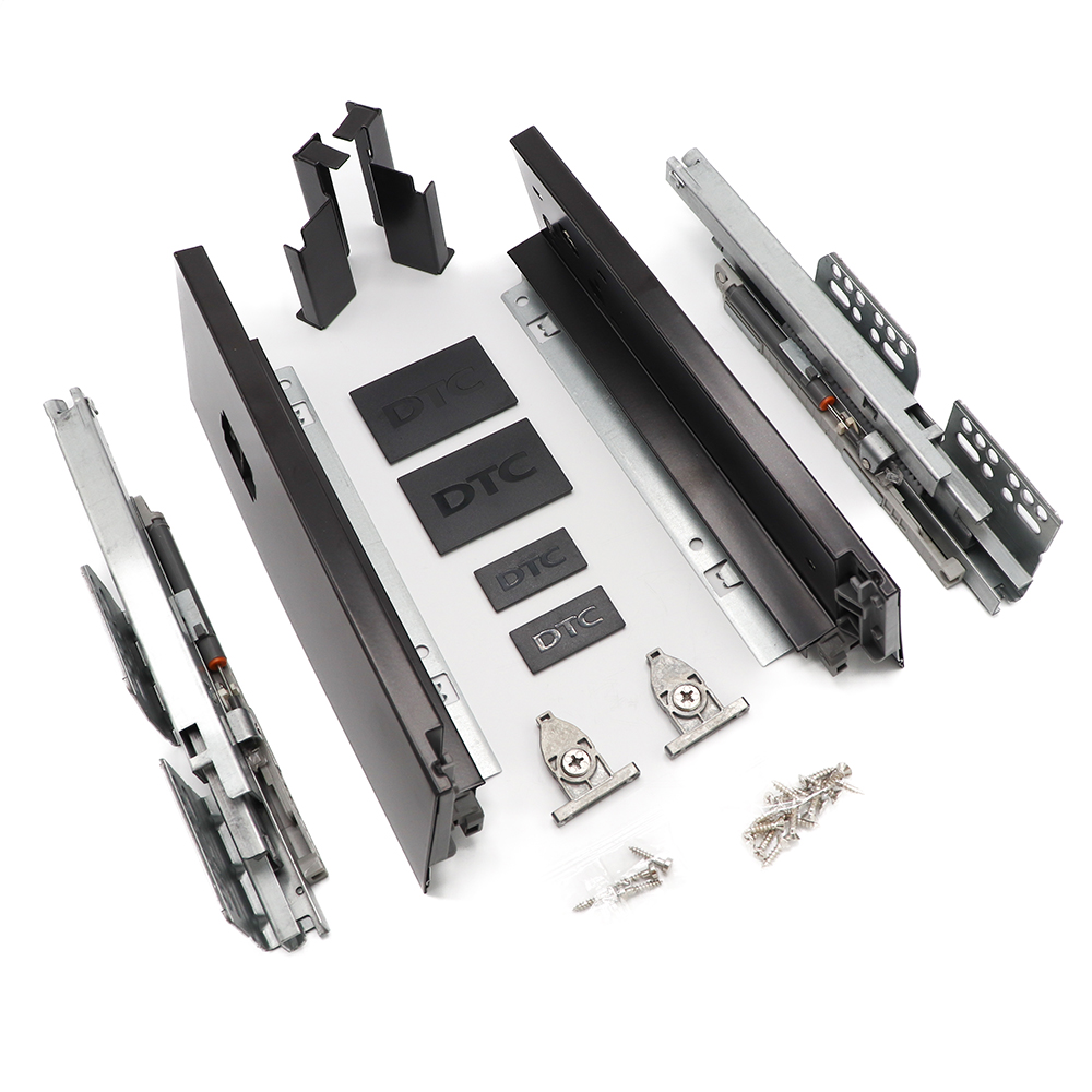 DRAGON PRO HB, Soft-Close Low Drawer System, 95mm High, NL=400mm, Full Extension, 40kg, To Suit 16mm Backs & Bases, Dark Grey