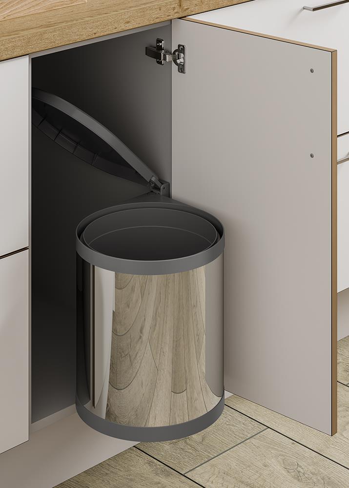 Innostor, Pull Out Waste Bin, Door Mounted, 15 Litre Capacity, To Suit Minimum 400mm Wide Cabinet, Stainless Steel / Dark Grey