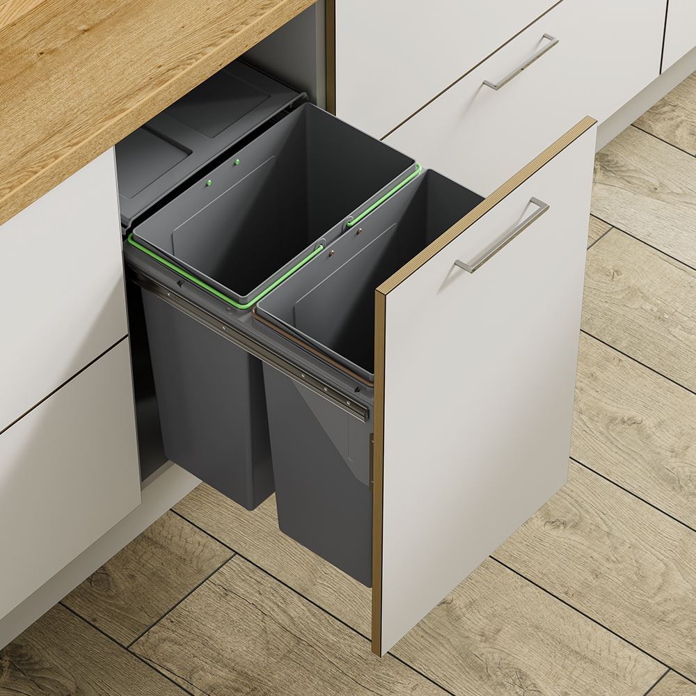 Innostor, Pull Out Waste Bin With Soft Close, Side Mounted, Segregated 62 Litre Capacity, 2 x 31 Litre, To Suit Minimum 450mm Wide Cabinet, Dark Grey