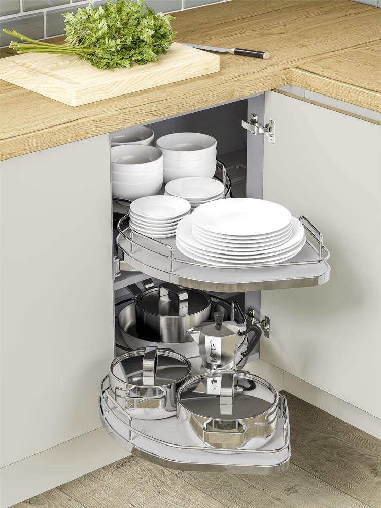Innostor Plus, NUVOLA 371, Twin Shelf Corner Pull Out, Right Hand, To Suit 1000mm Wide Blind Corner Base Cabinet With A 500mm Door, Chrome / Grey