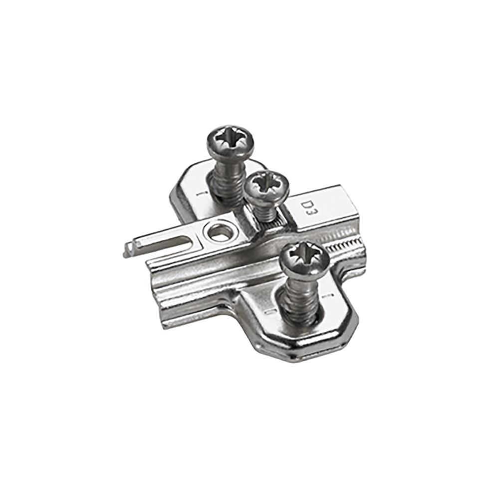 SLIDEON, Cruciform, Mounting Plate, With Euro Screws, Oblong Hole Adjustable Height, 1.5mm Spacing, Nickel Plated